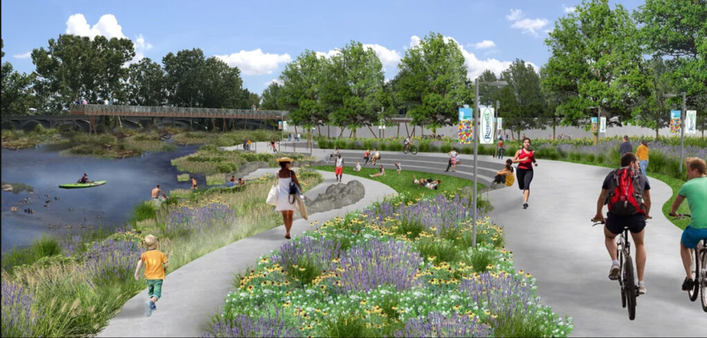- Trail extension: The Riverwalk Trail will be extended through the new park, giving people access to the area from the Main Street Plaza Trailhead.